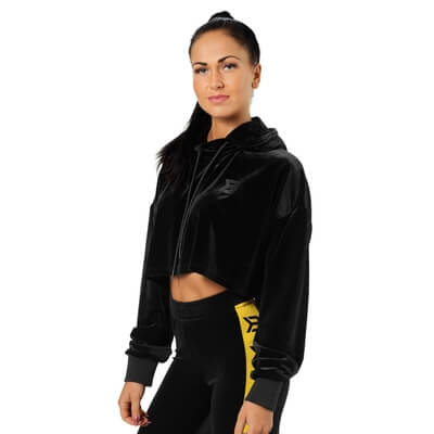 Chrystie Crop Hoodie, sort fra Better Bodies, en super lækker velour-hættetrøje med cropped længde, behagelig stretch og pasform!