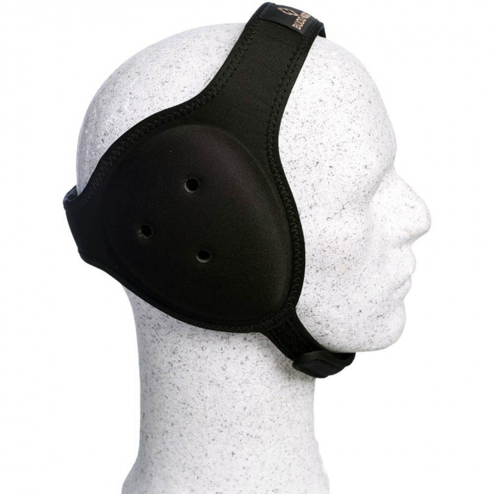 Ørebeskyttelse med tre velcrospænder for en optimal og tilpasselig pasform og perforeringer på siderne for god hørelse.