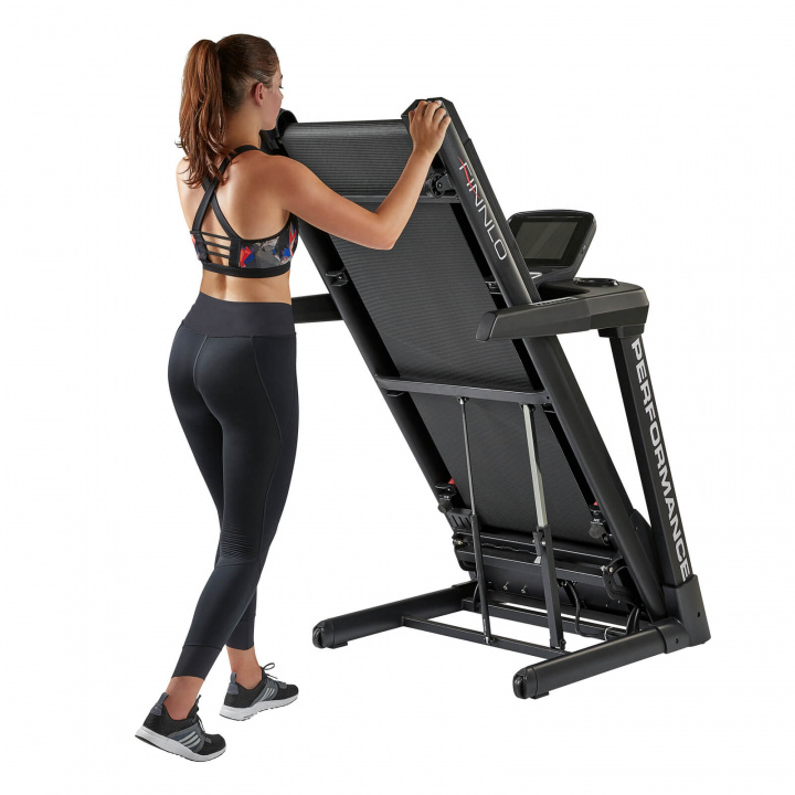Farve: sort Materiale: stål Dimensioner:   Længe: 200 (foldet 110) cm Bredde: 90 (foldet 95) cm Højde: 135 (foldet 162) cm Display:   Type: 10.1 tommer TFT-skærm, 1280 x 800 pixels. Skærme: Tid, hastighed, distance, kalorieforbrug, puls, hældning. Program: 10 stk præ-konfigurerede programmer, 4 stk brugerprofiler, 3 stk Target-programmer, 3 stk HRC-programmer, 1 stk Fitness-test. Sprog: Engelsk. Øvrig displayinformation: Bluetooth-kompatibel af forskellige træningsapps. Tekniske detaljer:   Håndpuls: Ja Trådløs pulsmåling: Ja, er tilbehør (5 kHz) Motor: 3.5 HK kontinuerlig effekt, 9 HK maksimal effekt. Løbeflade, bredde: 52 cm Løbeflade, længde: 152 cm Hastighedsinterval: 0.8-22 km/t Stigningsinterval: 0-15 % Dæmpning: 8 stk dæmpere. Måtte: 3.1 mm ortopædisk Strømforsyning: 230 V, 50 Hz Foldbar: Ja Transporthjul: Ja Inkluderet: Bruksanvisning. Vægt: 121 kg Maximal anvendelsesvægt: 160 kg Montering behov: Ja Manual: Engelsk, tysk. Øvrigt: Bluetooth-kompatibel.
