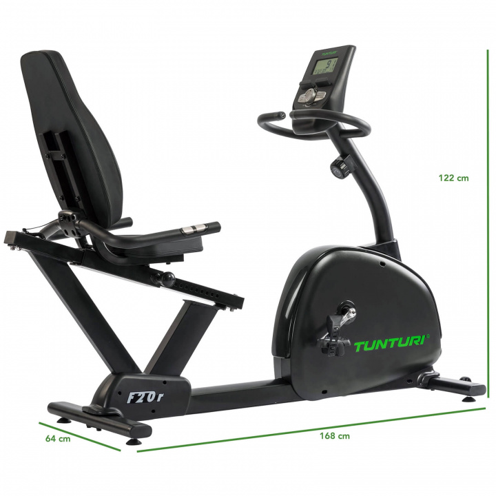 Dimensioner:   Længe: 168 cm Bredde: 64 cm Højde: 122 cm Display:   Type: 5.5 tommer LCD-skærm Skærme: Tid, distance, kaloriforbrug Program: 3 stk programmer (inkl. 1 stk Fitness-test) Tekniske detaljer:   Håndpuls: Ja Modstand: Permanent magnetsystem Modstandsniveau: 8 stk Trådløs pulsmåling: Ja, tilgængelig som tilbehør (5 kHz) Svinghjulsvægt: 9 kg Sadeljustering: Ja, vandret Strømforsyning: 2 x AA-batterier Transporthjul: Ja Sadel: Comfort Pedaler: Comfort Vægt: 51 kg Maximal anvendelsesvægt: 135 kg Manual: Tysk, spansk, finsk, fransk, engelsk, italiensk, hollandsk, svensk. Øvrigt: Holder til bog eller telefon. - Mere information