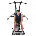 Farve: sort/antrasitt Dimensioner:   Længe: 125 cm Bredde: 165 cm Højde: 208 cm Tekniske detaljer:   Modstand: 100 kg (2 x 50 kg) Modstandsniveau: Justerbar i 2,25 kg trin Sæder: Lodret justerbart og aftageligt sæde til stående træning. Bænk: 120 x 49 x 106 cm. Antal brugere/stationer: 1 Transporthjul: Ja Inkluderet: Træningsbænk, nedtrekkstang og enhånds drahåndtag Vægt: 92 kg Maximal anvendelsesvægt: 135 kg Manual: Engelsk Øvrigt: Mere end 100 træningsmuligheder! Butterfly, bænkpress, slips, ben park, armcurl, roing, tricep presse, ben presse, ben løft, mavetræning, bilaterale træning og meget mere.