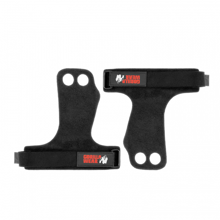 2-Hole Leather Lifting Grips, black, Gorilla Wear