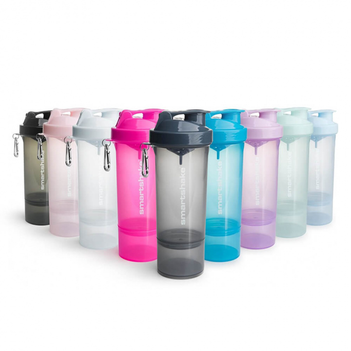 Smartshake Slim rummer 400 ml, og et ekstra rum til 1 dl ekstra portion pulver, eller hvad du vil opbevare. Shakeren har ekstra tykke gevind, der gør den nemmere at skrue på.