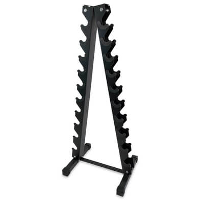 Et praktisk og pladsbesparende håndvægtstativ i pyramidedesign fra JTC Power til 10 par (20 stk) håndvægte.
