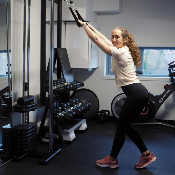 Flex Tower 2.0 fastgøres direkte på væggen og har en optimal højde for at give god træningsplads og et enhånds trækhåndtag medfølger i købet.