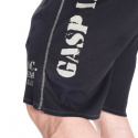Mørke shorts fra GASP med kraftig bomuldssnøre i taljen og to velplacerede GASP-prints på venstre ben, et foran og et lodret ned ad ryggen.